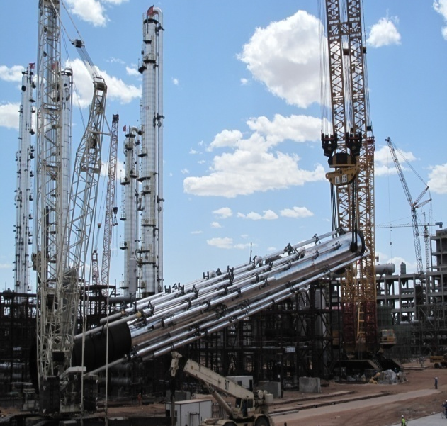 凈化4臺(tái)甲醇洗滌塔模塊化吊裝成功