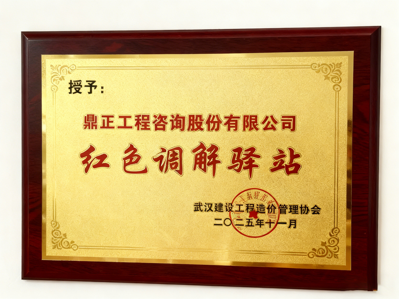 11月18日上午,武漢建設(shè)工程造價管理協(xié)會第四屆理事會第七次會議順利召開。會議期間舉行了“紅色調(diào)解驛站”首批協(xié)同創(chuàng)建單位授牌儀式,鼎正成功入選并獲授“紅色調(diào)解驛站”稱號。